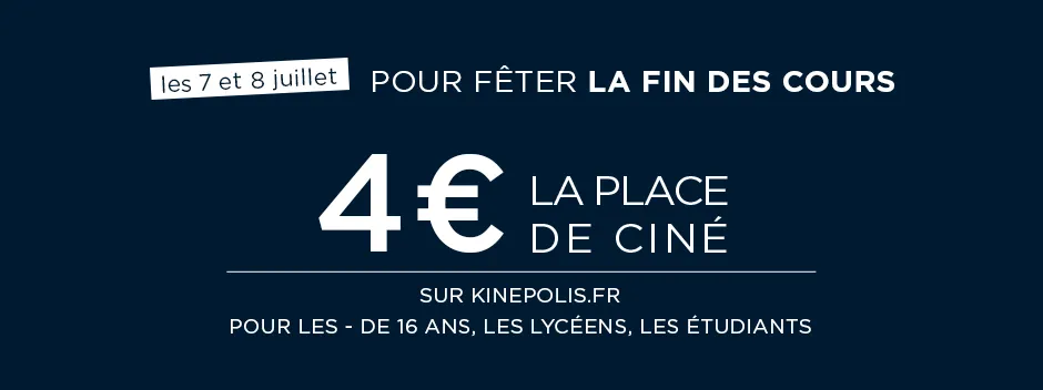 C'est un petit bon plan de dernière minute à destination des plus jeunes. Le kinepolis de Lomme fête la fin des cours et propose la place de cinéma à 4 euros jeudi 7 juillet et vendredi 8 juillet pour les moins de 16 ans, lycéens et étudiants. Une offre qui tombe à pic puisque la fête du cinéma qui proposait la même réduction vient de se terminer mercredi 6 juillet.