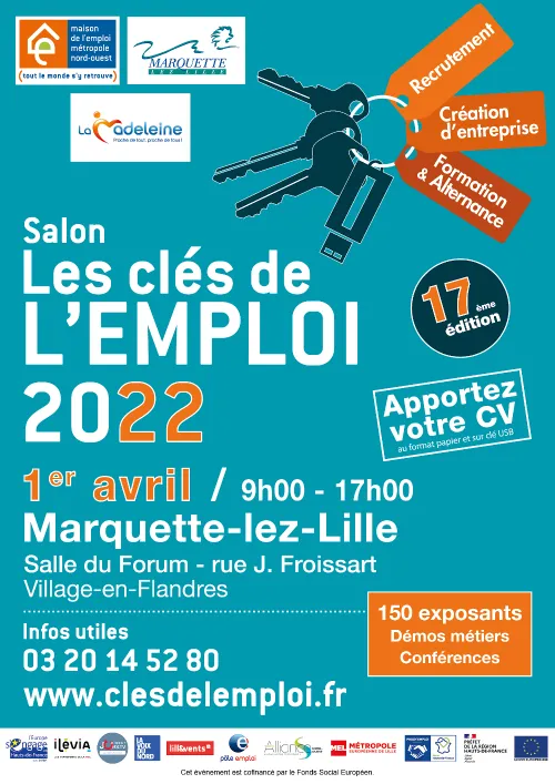 Le salon “Les clés de l’emploi” aura lieu le 1er avril 2022 à Marquette-lez-Lille !