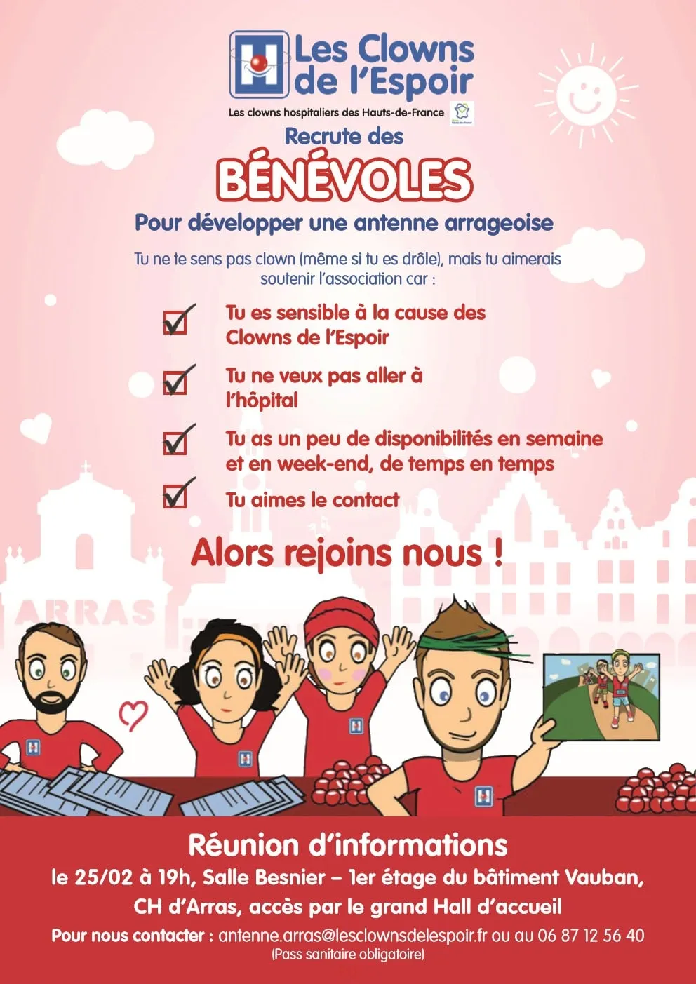 Les clowns de l’espoir lance une antenne de bénévoles à Arras. Toutes les personnes souhaitant participer bénévolement au développement de cette antenne sont les bienvenues.