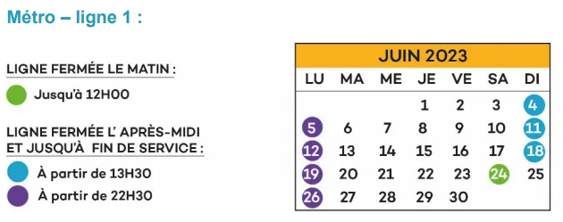 Avec ces travaux, la ligne 1 du métro sera à l'arrêt à plusieurs reprises ces prochaines semaines :