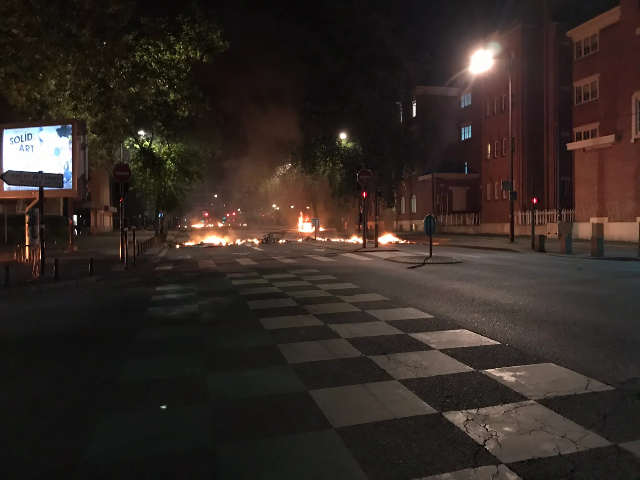 Des barricades en feu cette nuit à Lille (photo Thomas Schonheere sur Twitter)