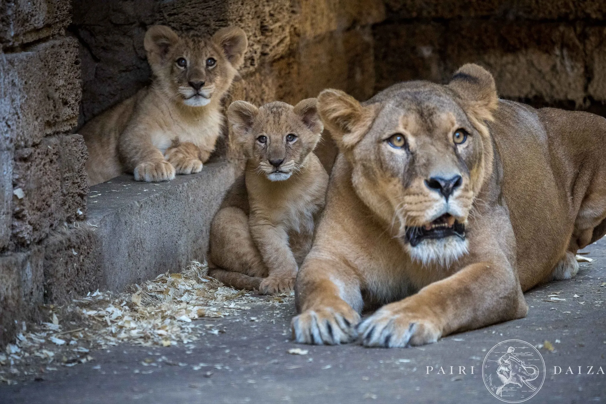 Les deux lionceaux et leur maman sont désormais visibles des visiteurs dans la Terre des Origines.