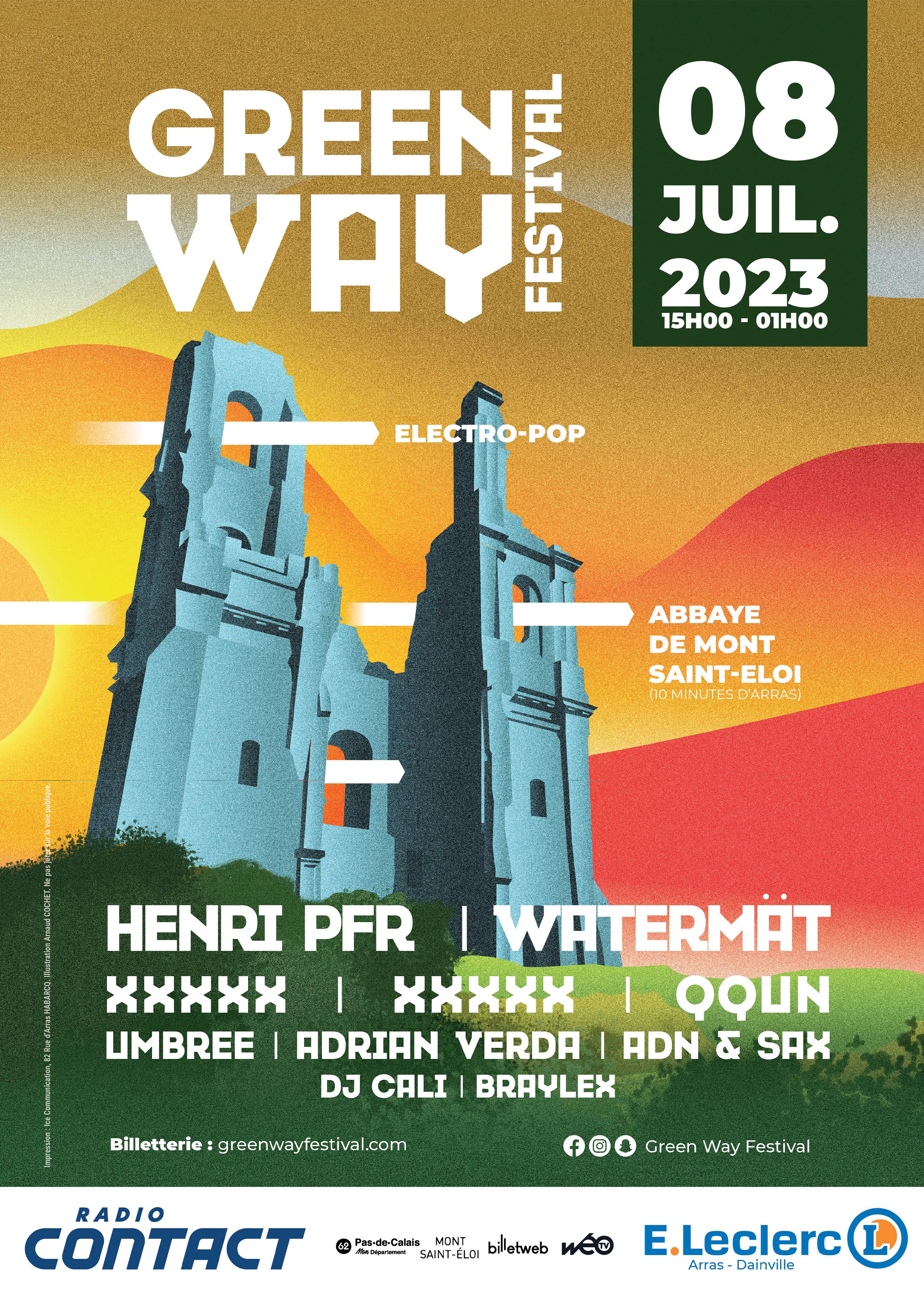 La 1ère édition du Festival electro-pop "GREEN WAY FESTIVAL" se déroulera à 10 minutes d'Arras, à l'Abbaye de Mont-Saint-Eloi, le 8 juillet prochain de 15h à 1h du matin avec Radio Contact !