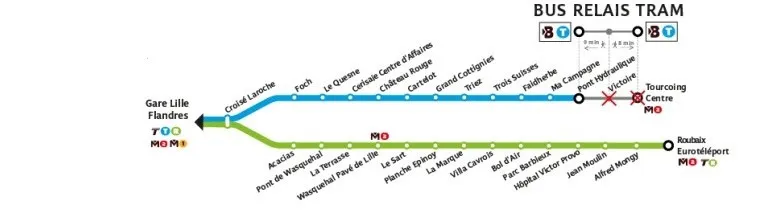 A Tourcoing, des travaux d'assainissement effectués par la Métropole Européenne de Lille (MEL) vont empêcher les dessertes entre les arrêts Point hydraulique et Tourcoing-centre.