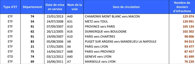 Le classement des 10 radars les plus actifs en France en 2017 :