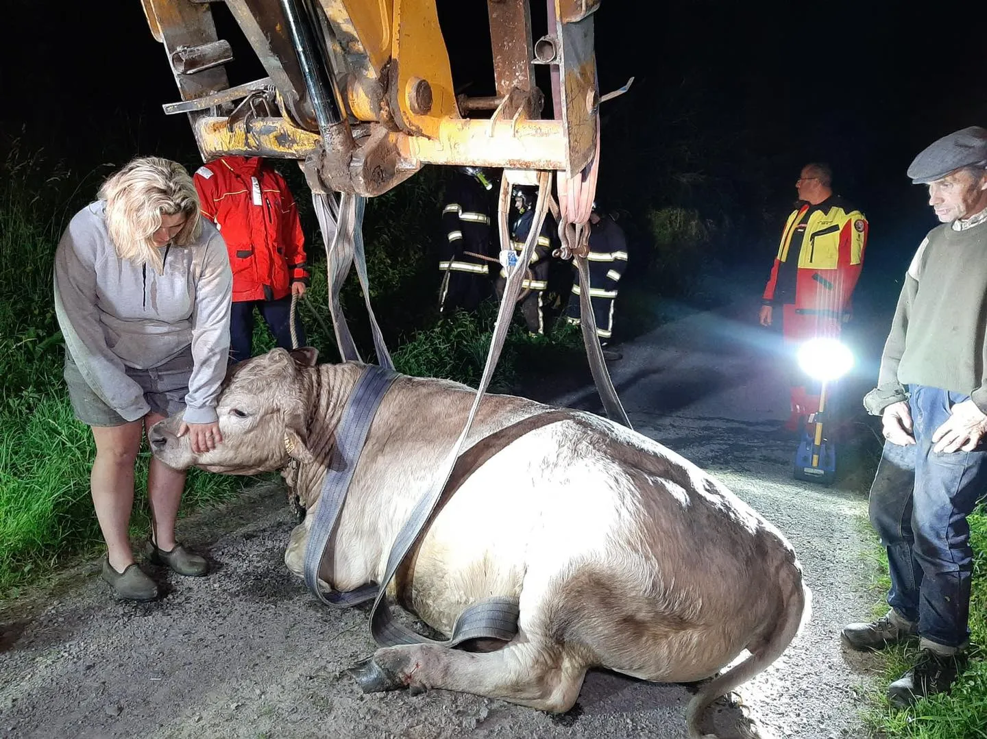 L'animal a été récupéré sain et sauf au moyen d’un engin lourd.